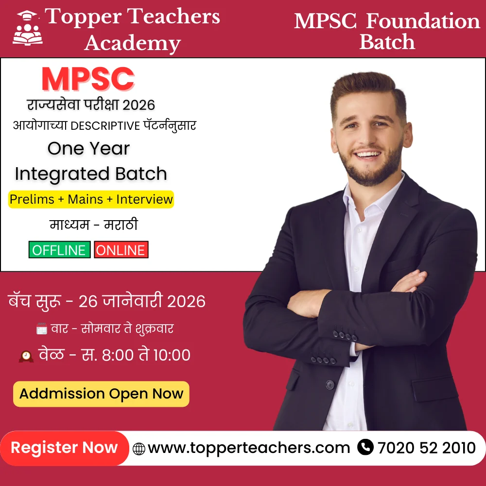 Welcome to Topper Teachers Academy – Pune’s Trusted Name for MPSC Coaching, offering All MPSC Courses under one roof with a strong focus on the latest descriptive exam pattern.